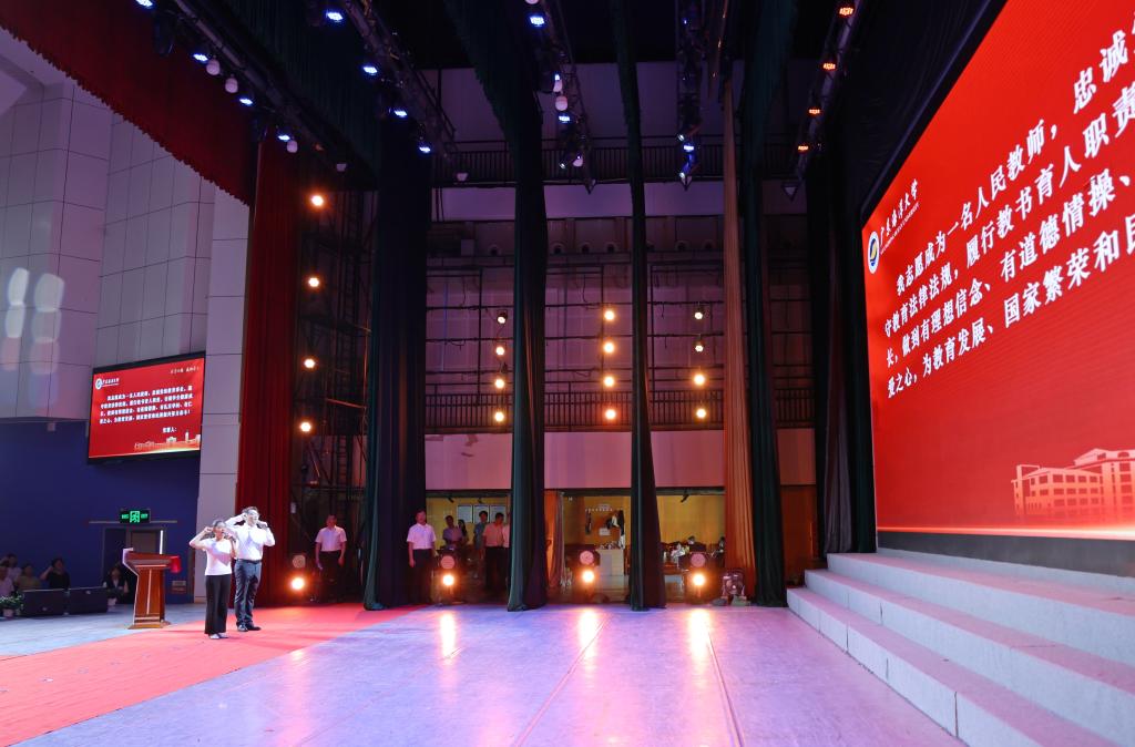 会上,全体教职工进行宣誓,用铿锵的誓言捍卫神圣职责。由我校教师创作的节目《教师服装秀》、教师代表歌曲演唱《叫你一声妈妈》《教师颂》在活动现场展演。
